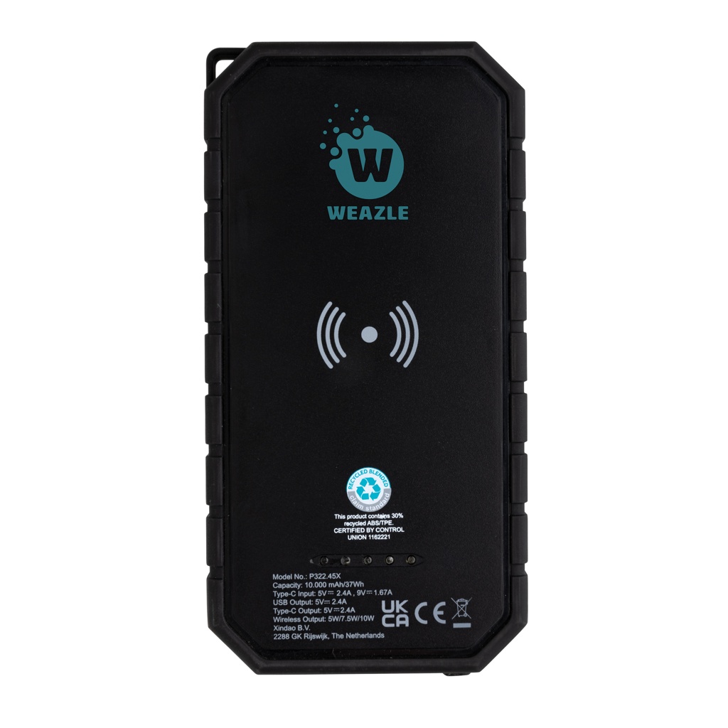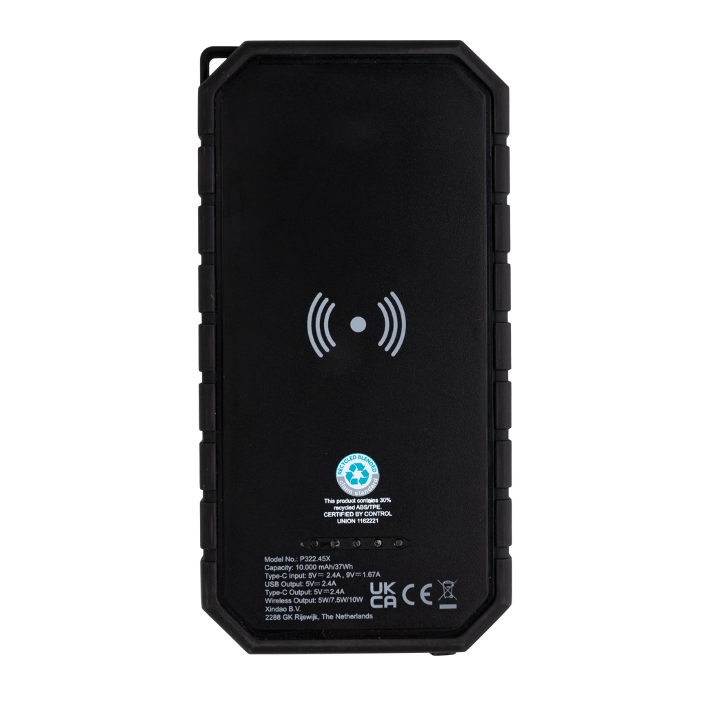 10.000 mAh Solar-Powerbank mit 10W Wireless aus RCS Plastik