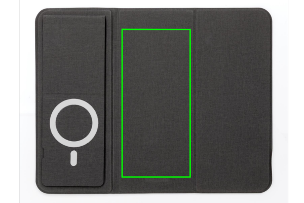 Flaches und faltbares 10W Wireless Charging Mauspad aus PU, dass auch als Smartphonehalter dienen kann. Da es flach gefaltet werden kann, ist es sehr einfach überall hin mit zu nehmen. Der 10W Wireless Charger ist mit allen QI-fähigen Geräten kompatibel (iPhone 8 und höher und Android-Geräte). Type-C-Input: 9V / 2A; Wireless Output: 9V / 1.1A; Inklusive 120cm PVC-freiem Type-C Ladekabel aus TPE. Und mit 19 integrierten hochwertigen N52H hitzebeständigen Magnete ausgestattet. Registered design