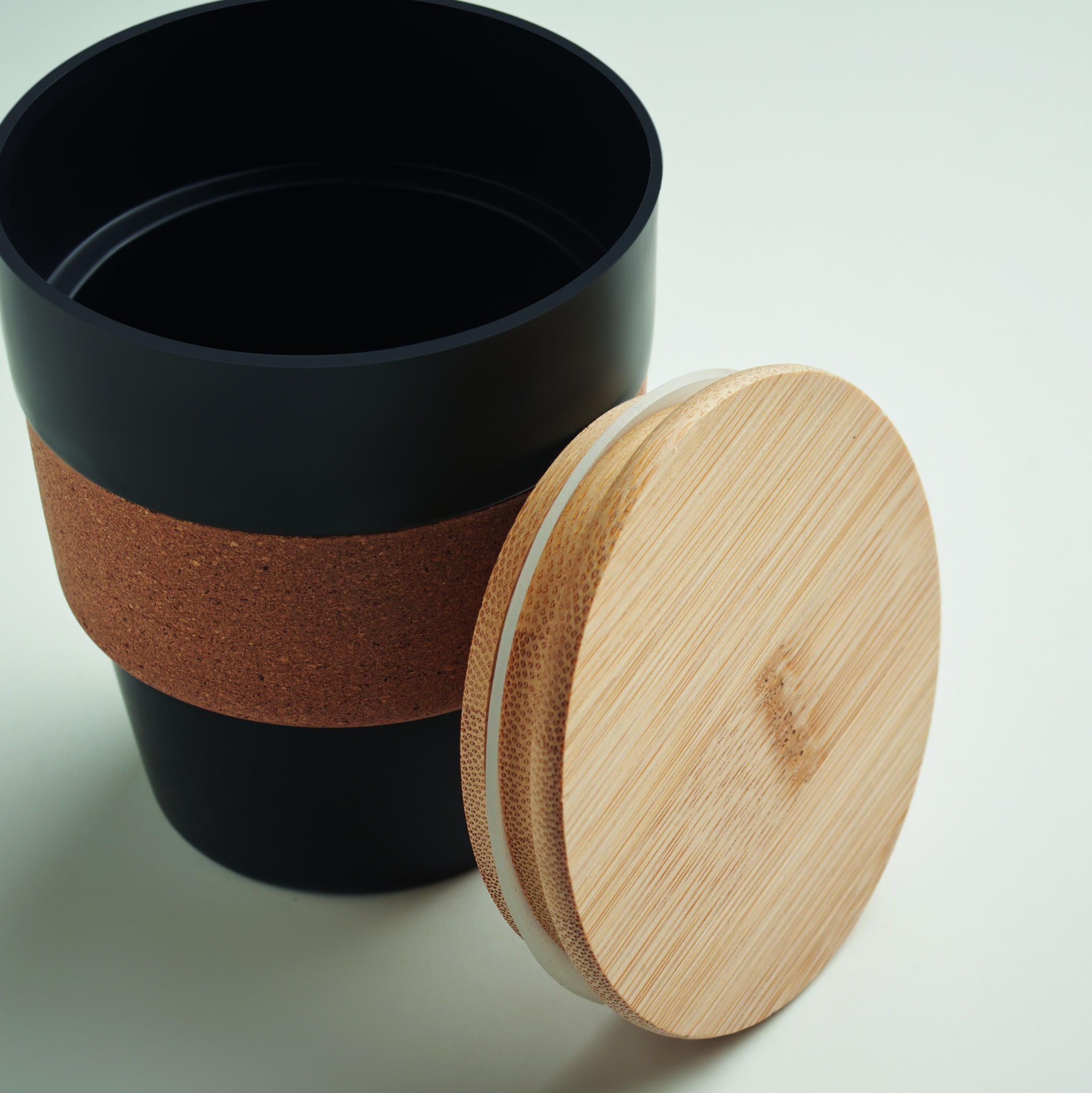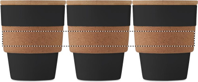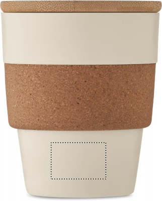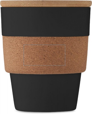 Einwandiger Trinkbecher aus recyceltem PP. Griff aus Kork und Deckel aus Bambus. Füllmenge: 300 ml. Da es sich um einen einwandigen Becher handelt, kann es trotzdem zu einer Wärmeübertragung kommen. Bambus ist ein natürliches Produkt, es kann daher zu leichten Abweichungen in Farbe, Dekor und Maßen kommen.