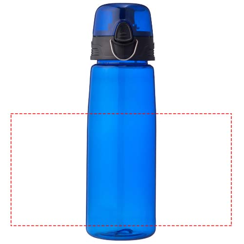 In durstigen Zeiten ist die leichte Capri 700 ml Sportflasche ein Lebensretter. Die Flasche hat einen aufklappbaren Trinkdeckel mit Ausgießer, der sie schützt und sauber hält. Mit dem Druckknopf lässt sie sich leicht öffnen. Die transparente Flasche besteht aus robustem, flecken- und geruchsfreiem Eastman Tritan™ und ist somit langlebig und BPA-frei.