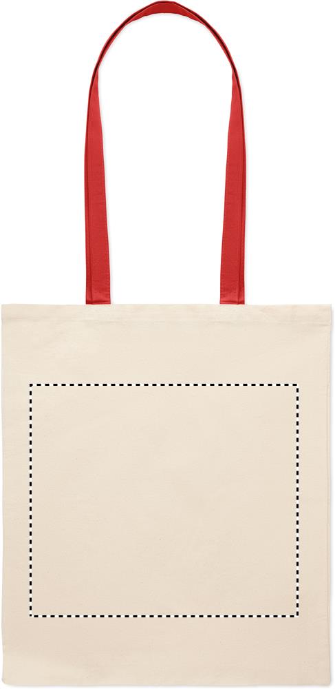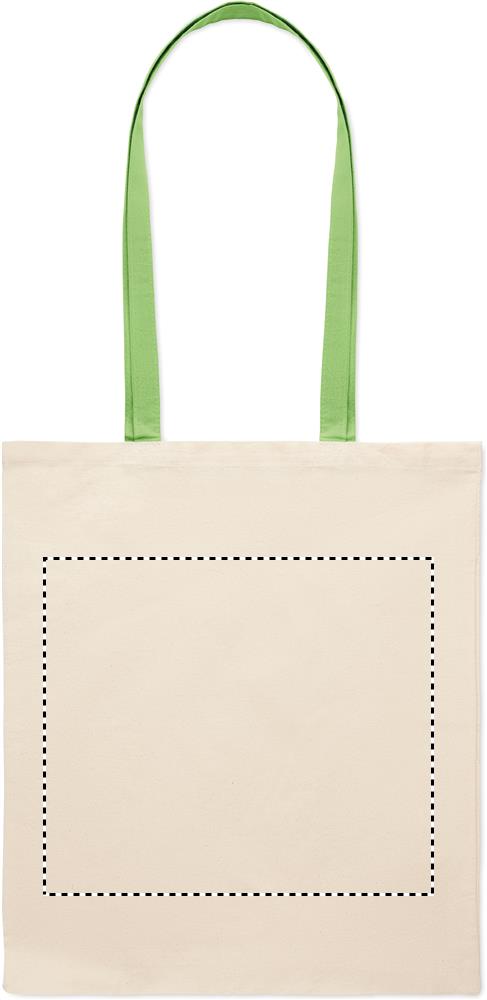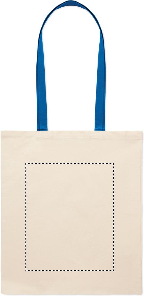 Einkaufstasche aus Baumwolle mit langen, farbigen Tragegriffen. 140 g/m².