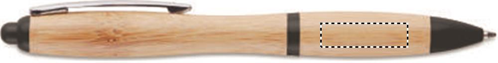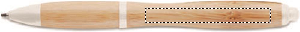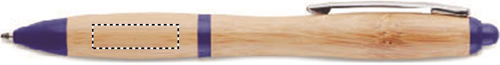 Druckkugelschreiber mit Schaft aus Bambus. Clip aus Metall, Drücker und Spitze aus ABS. Blaue Tinte. Bambus ist ein natürliches Produkt, es kann daher zu leichten Abweichungen in Farbe, Dekor und Maßen kommen.