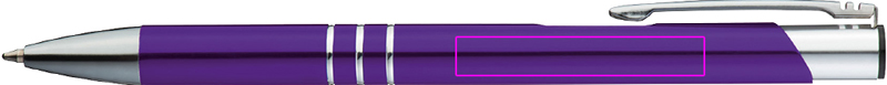 Metallkugelschreiber mit blauschreibender Mine. Ihre Werbung gravieren wir unterhalb des Clips.