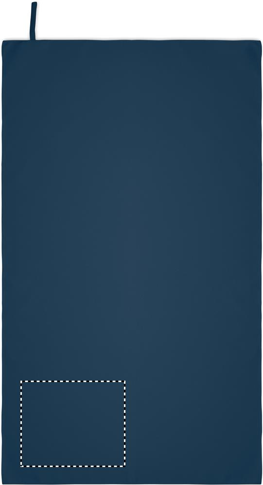 Handtuch aus Mikrofaser. 90% Polyester und 10% Polyamid mit Elastikschlaufe. Leicht und schnell trocknend. Maße: 70 x 120 cm.