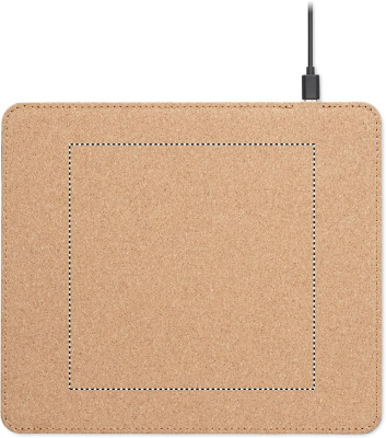 Mousepad mit Oberfläche aus Kork. Inkl. kabelloser 15W Ladestation. Ausgang: DC 9V/1.6A. Kompatibel mit den neuesten Androiden, iPhone® 8 und neueren Modellen. Kork ist ein 100% natürliches Material. Aufgrund seiner strukturellen Beschaffenheit und Oberflächenporosität kann das endgültige Druckergebnis pro Artikel Abweichungen aufweisen.