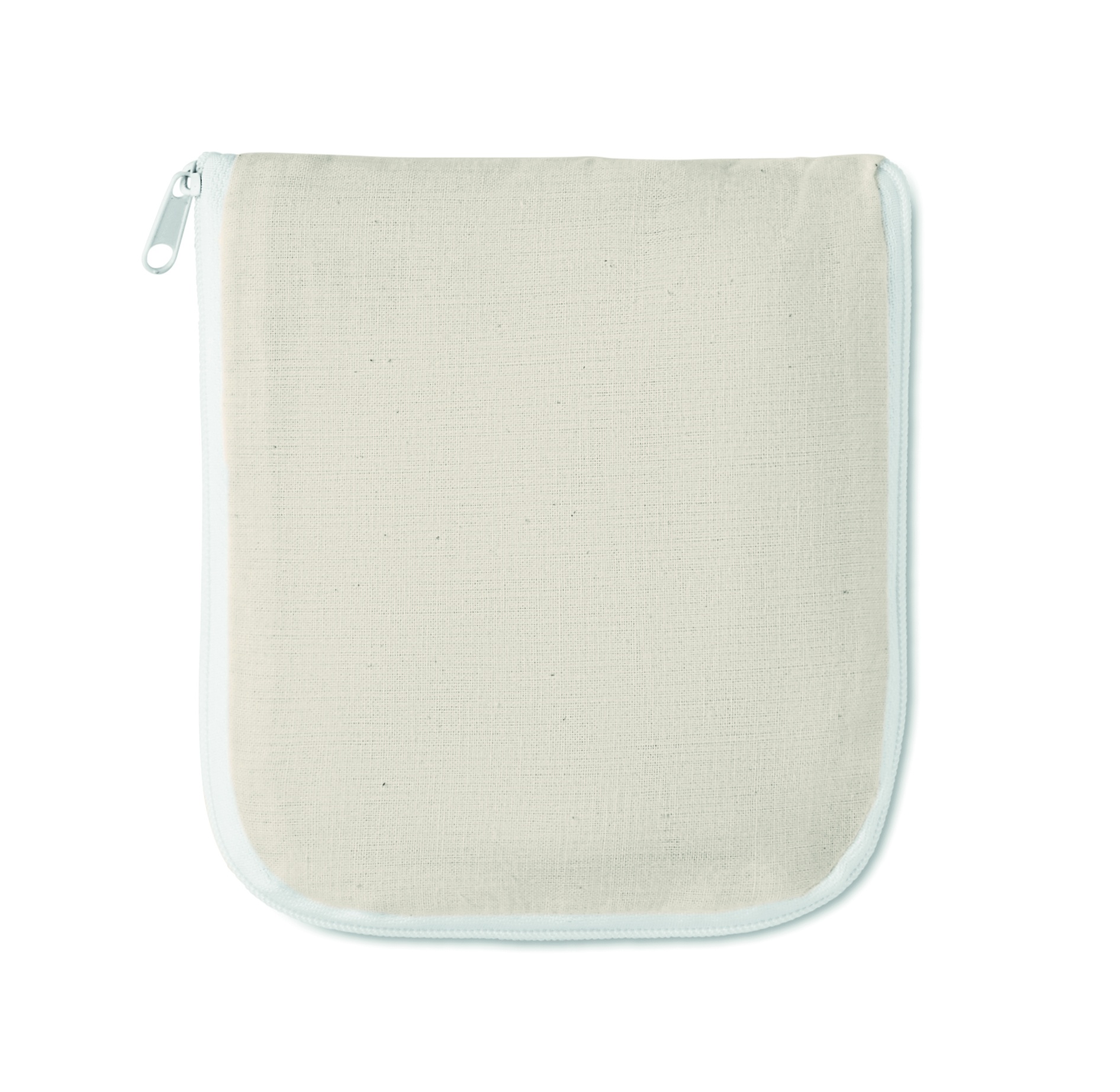 Foldable shopping bag in cotton with short handles. 100 gr/m². Supplied unfolded.