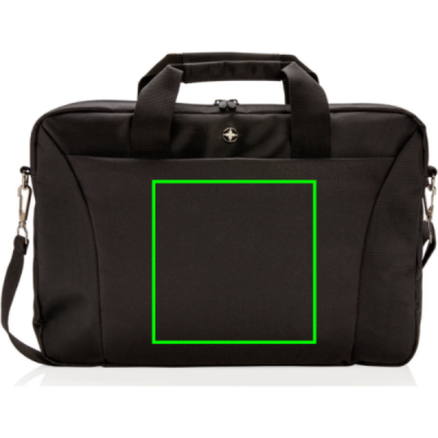Carry your 15.4” laptop to and from work inside this slim 600D with 1680D polyester laptop bag from Swiss Peak. Includes a padded pocket for your laptop, a separate pocket to hold your iPad or tablet, and a front zippered extensive organiser with pen sleeves and pockets to hold all of your small accessories. Also comes with a rear luggage opening that can be slid over the handle of your upright rolling suitcase. Versatile carrying options with the adjustable & detachable shoulder strap. PVC free.