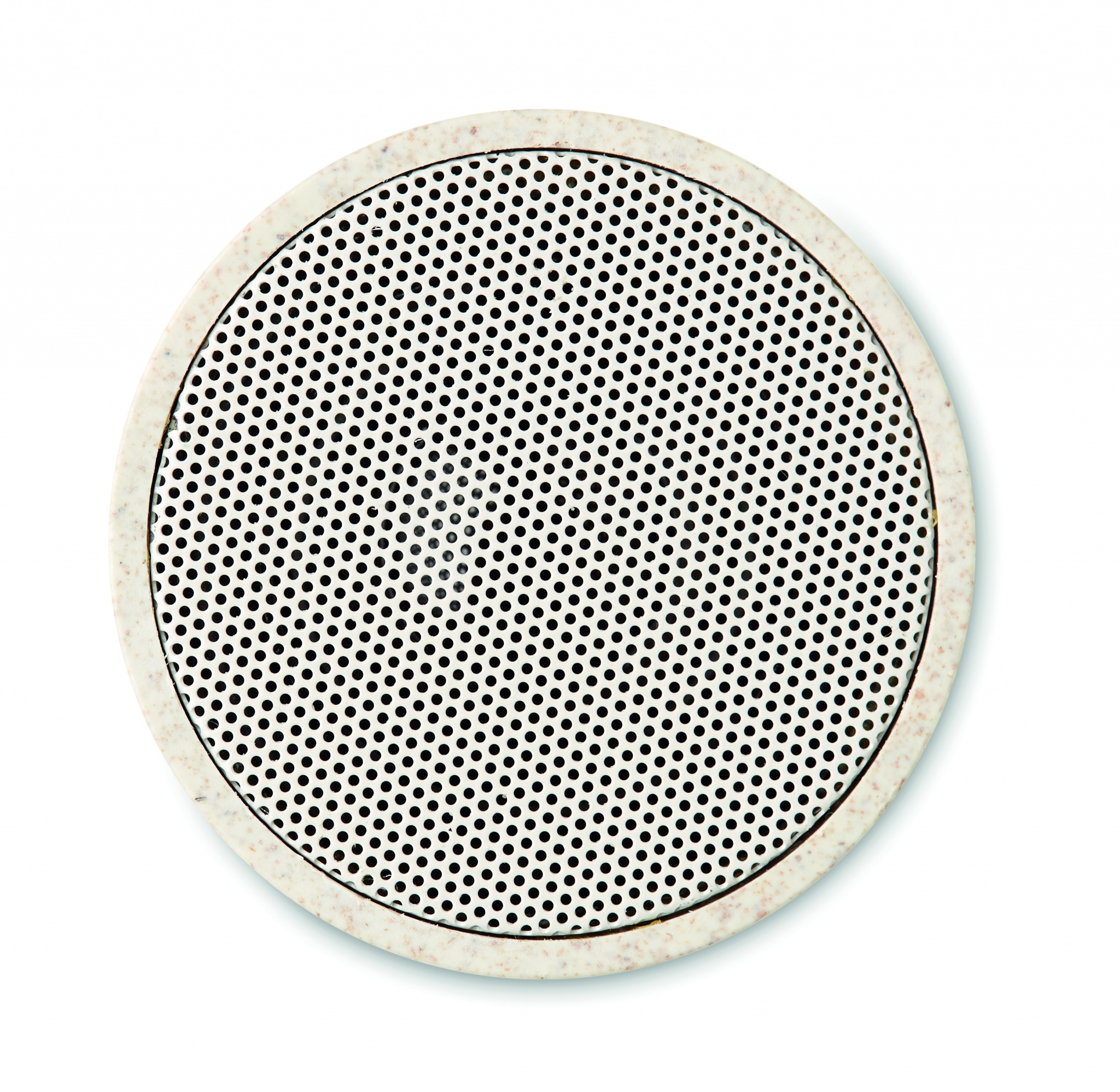5.0 wireless speaker in wheat straw (35%) and ABS(65%) and LED light indication. 1 Rechargeable Lithium 300 mAh battery included. Output data: 3W, 3 Ohm and 5V. Playing time approx. 2h.