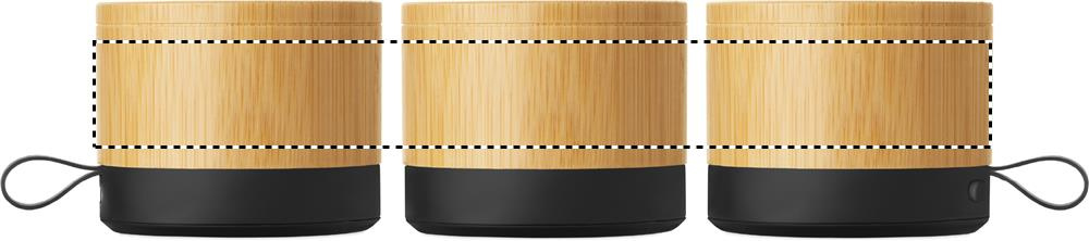 Wireless 5.1 speaker with bamboo casing and ABS base. Features 3W mono sound. Includes rechargeable and replaceable 500mAh battery. Compact and modern design.