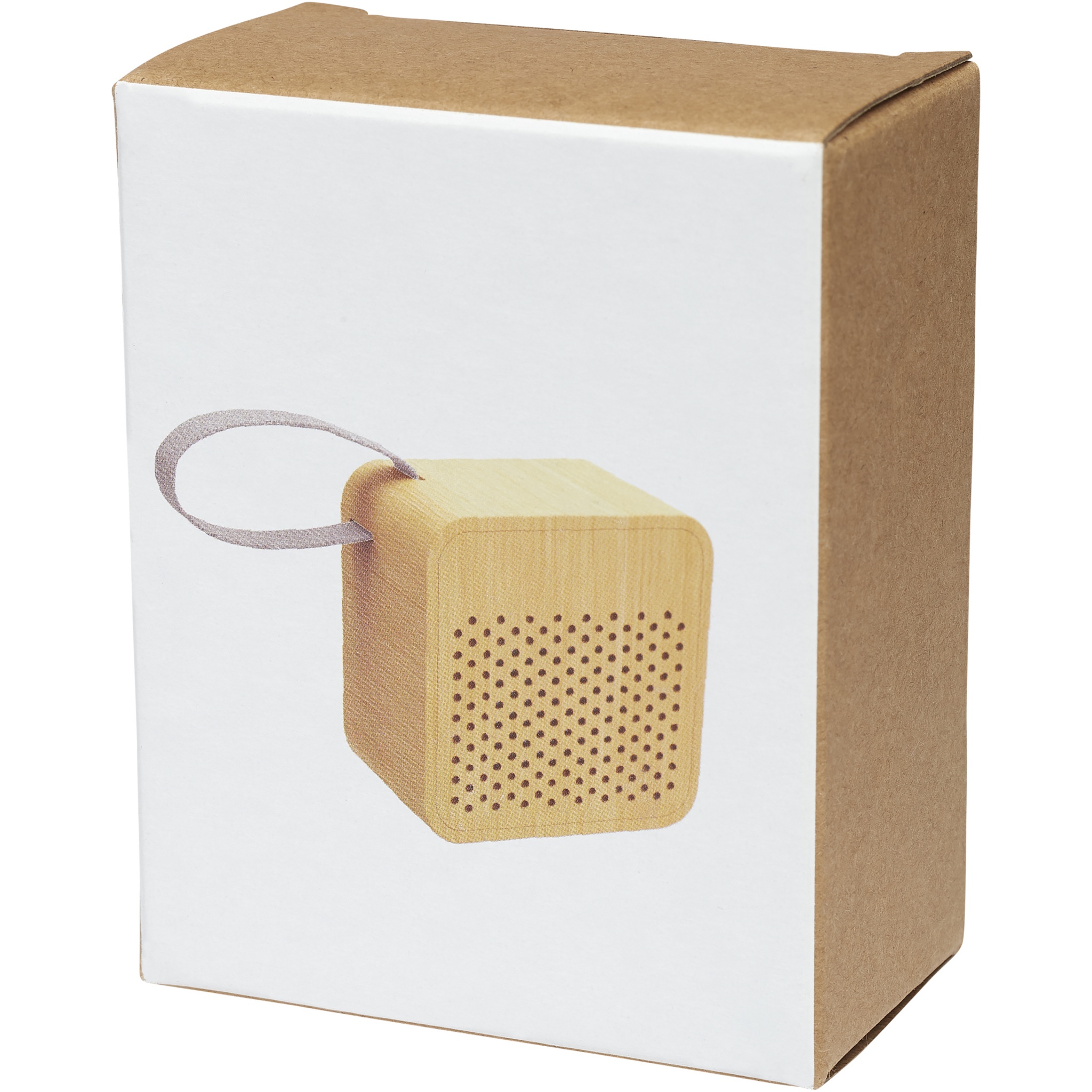 Bamboo Bluetooth® speaker with a 3W output and crystal clear sound. A compact speaker with a built-in 500 mAh battery that allows for up to 3 hours of usage at maximum volume. Bluetooth® 5.0 working range is up to 10 meters. Packaged in a gift box and delivered with an instruction manual (both made of sustainable material). Micro-USB charging cable is included. Since bamboo is a natural product, there may be slight variations in colour and size per item, which may affect the final decoration outcome.