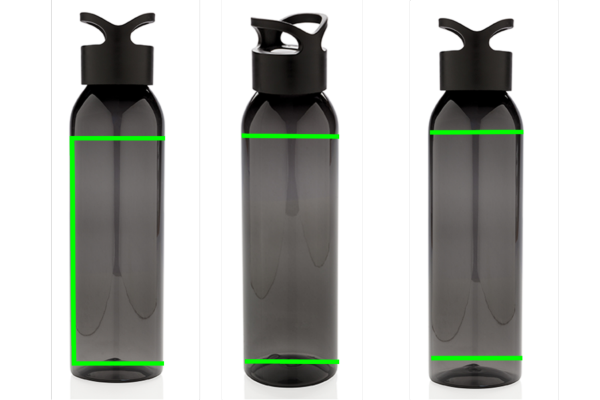 AS bottle. BPA-free and re-usable. With carry screw cap. Spill proof. This water bottle is perfect for use at the gym. Cold water and handwash only. Content 650 ml.