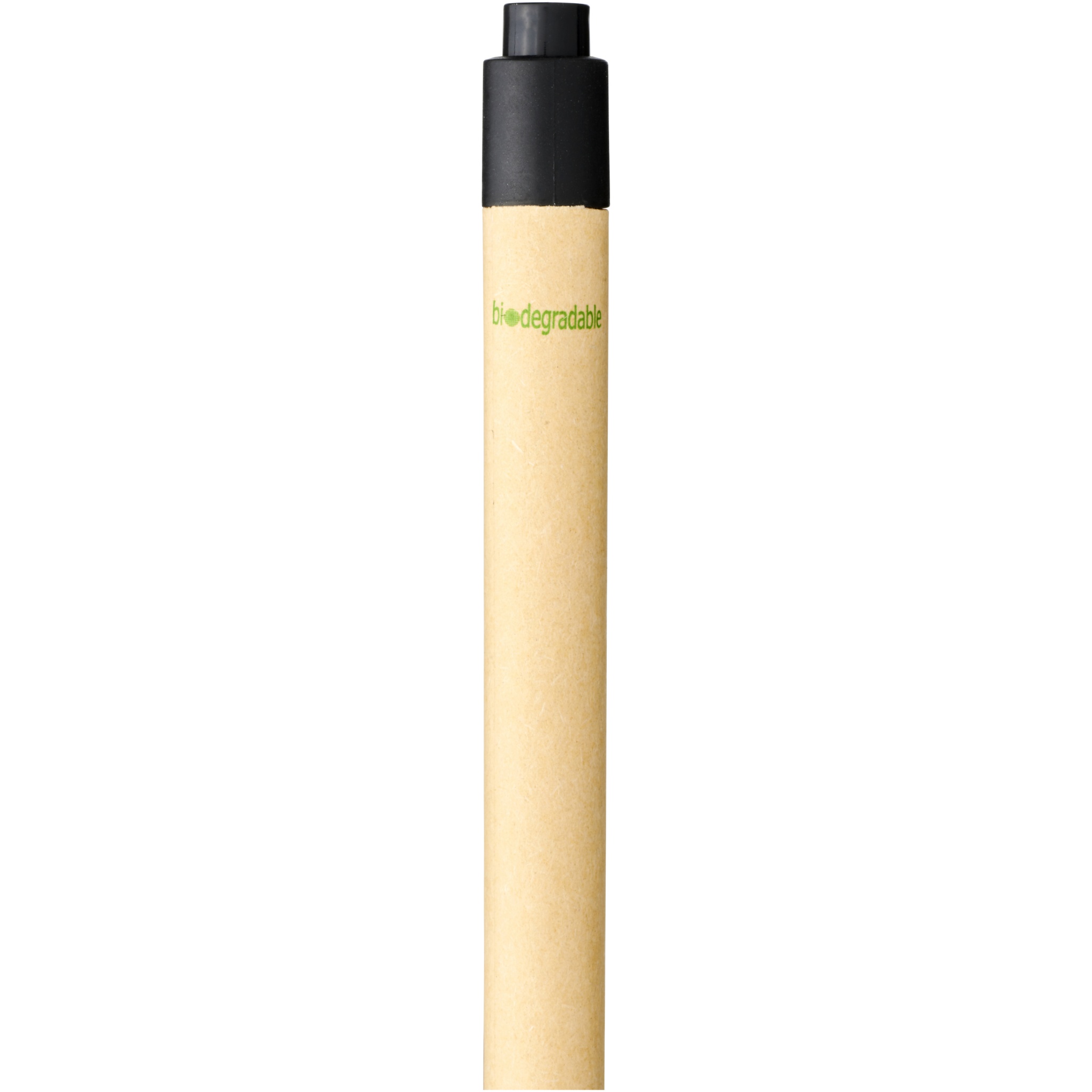 Eco friendly ballpoint pen with click action mechanism, with a barrel made of biodegradable paper material, and corn plastic trims that comes in a variety of colours. Recycled carton colour may vary.