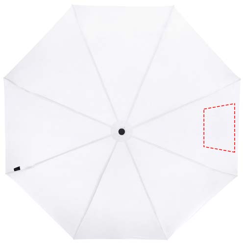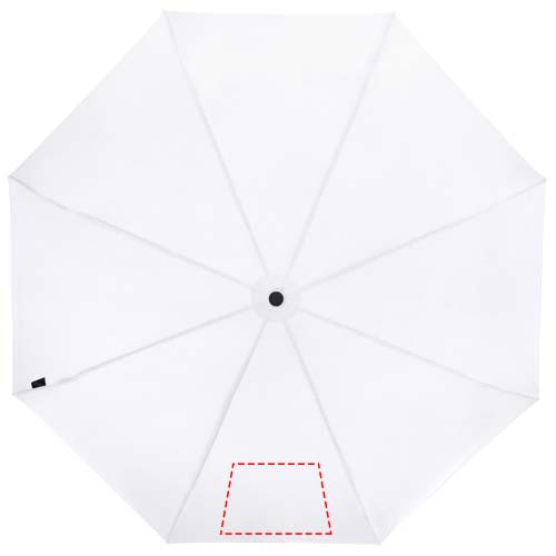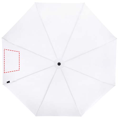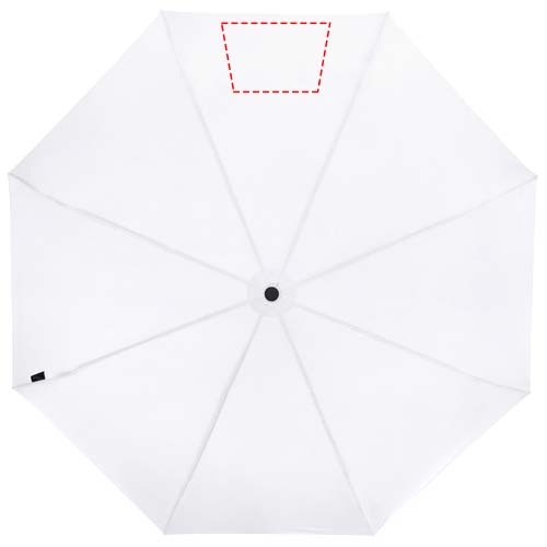 Manual folding umbrella with a recycled PET pongee polyester canopy. The sturdy metal shaft and high quality frame with fibreglass ribs offers maximum flexibility in windy conditions. Supplied with a pouch and can easily fit a handbag or backpack for convenient carrying. Together with the wooden handle and the recycled PET pongee polyester canopy it offers a sustainable choice. Available in an wide variety of contemporary colours with a large decoration area on each of the panels.