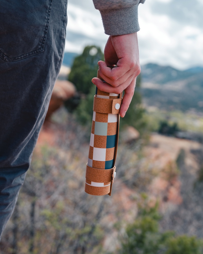 This foldable backgammon and checkers game set is a modern high-quality board game set featuring a FSC®-certified cork playing surface and playful colours. It is foldable for easy storage and transport, comes with playing pieces and a dice. With its classic design and durable playing pieces, it's a great option for anyone who loves these classic board games and wants a set that can be easily transported and stored.