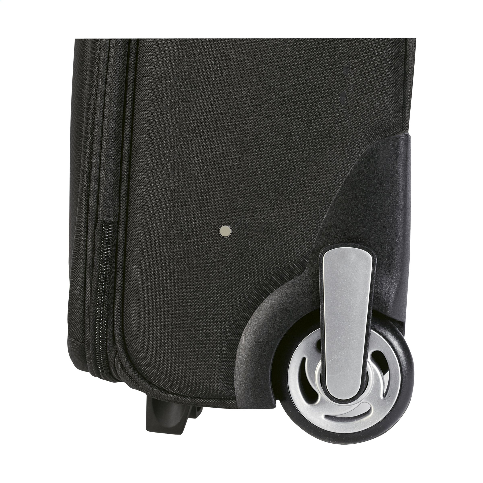 Trolley case made from 1000D polyester with large main compartment, double zip, several pockets, 2 solid wheels and telescopic aluminium handle. Capacity approx. 22 litres. Each piece in a shipping box.