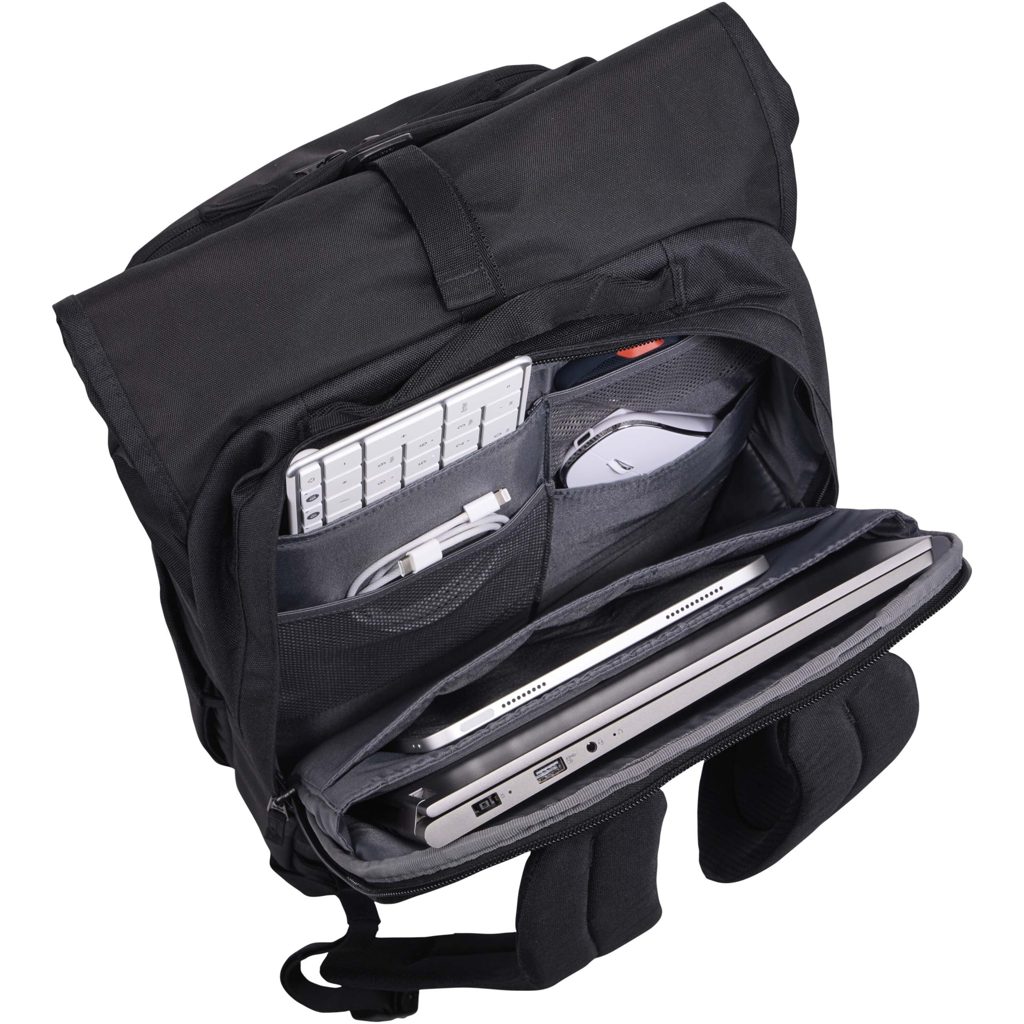 The Case Logic Variate 17" laptop backpack is a sleek and versatile companion for work, travel, and everything in between. Its rolltop design expands from 28L to 33L, offering flexible storage with a modern look. Made from 85% recycled materials by weight, including a 100% recycled polyester shell, lining, and mesh, it’s finished with a PFAS-free durable water-repellent coating. Inside, a dedicated compartment fits a laptop up to 17", with room for a tablet, keyboard, mouse, and other essentials. A removable organising pouch keeps small accessories in one place and easily transfers between home and office. On the outside, two extendable side pockets provide quick access to water bottles or umbrellas. Designed for everyday comfort, the backpack features a breathable, padded back panel and shoulder straps, along with a pass-through strap for easy attachment to rolling luggage.