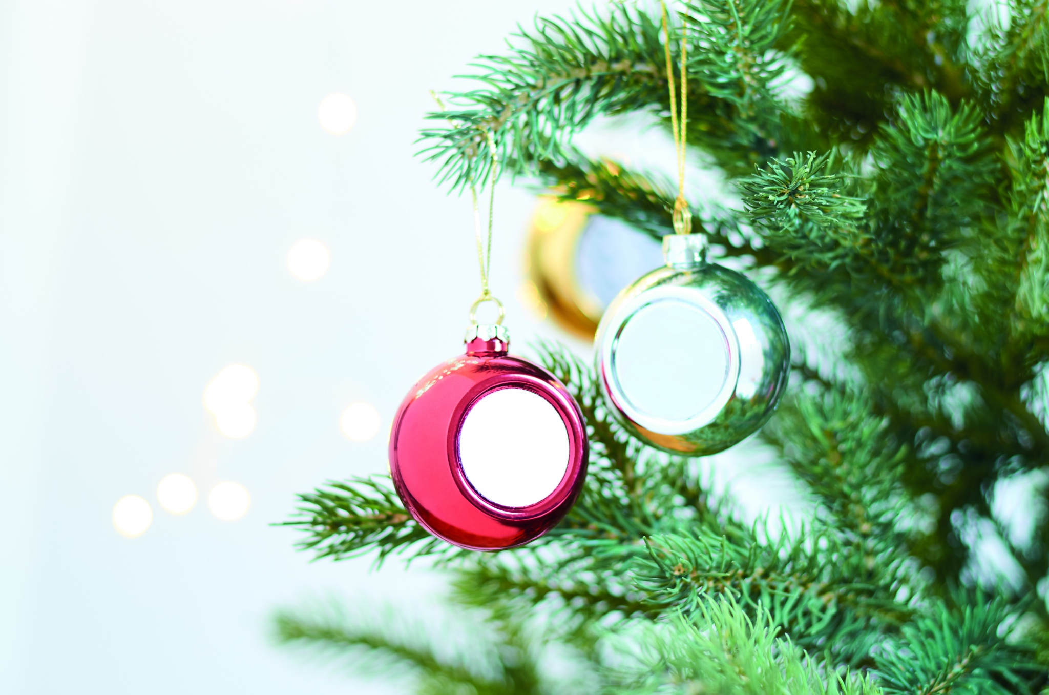Christmas bauble in shiny PP including plate for sublimation print. Diameter 6 cm.