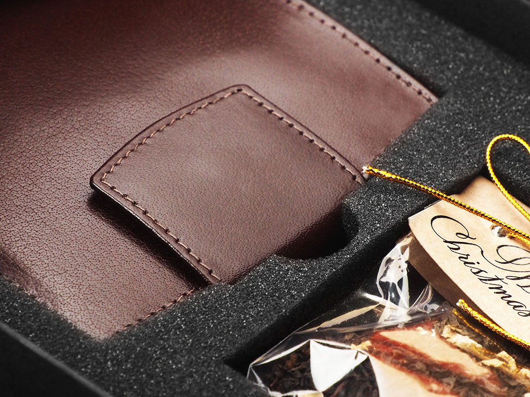 Includes leather wallet