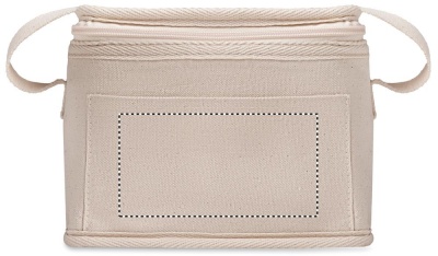 Cotton 280 gr/m² cooler bag with front pocket. 3 mm insulation aluminium laminated foil. Capacity: 3 L.