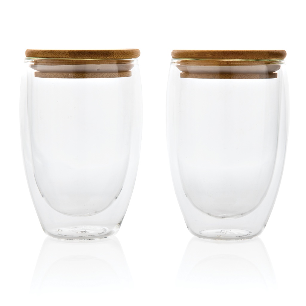 Products Drink Double wall borosilicate glass with bamboo lid 350ml 2pc set
