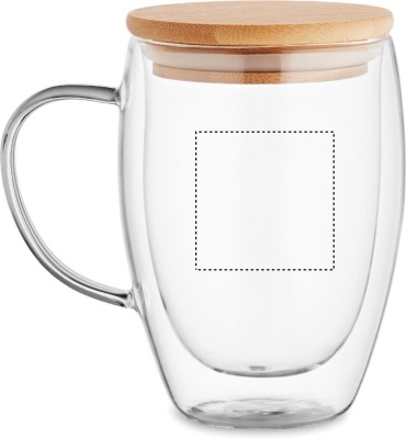 Double wall borosilicate glass mug with handle and bamboo. Capacity: 350 ml.