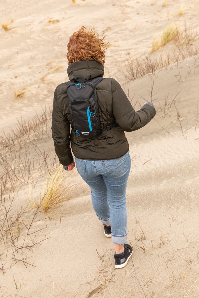 Take all the essentials you need with you with this small hiking backpack. The backpack is made from durable polyester and features a minimalist design which can hold a hydration reservoir. Perfect for hikes, bike rides, and all sorts of outdoor adventures.This small hiking backpack includes a zippered front pocket and a hole for easy routing of your hydration tube. With a mesh padded back panel, mesh padded shoulder straps, it's easy and comfortable to carry for all day use. PVC free.