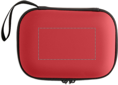 First aid kit in hard PU case. Includes 2 gloves, 1 blanket, 1 tape, 2 bandages, 1 scissors, 4 swabs, 10 plasters and 6 cleaning wipes. Not available for sale outside the EU.