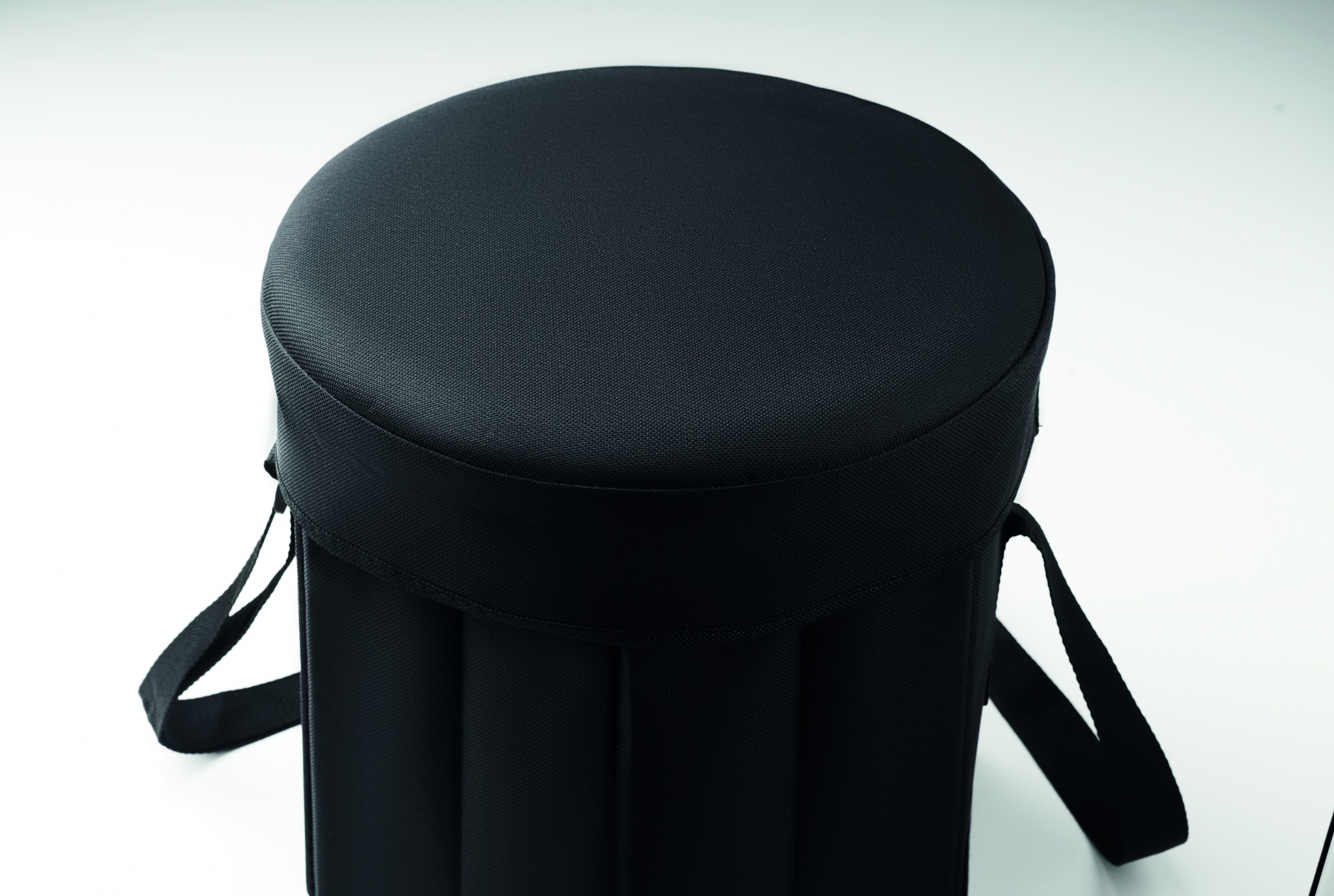 600D polyester foldable seat or table with insulated cooler bag with aluminium foil and carrying strap. Maximum weight 80 kg.