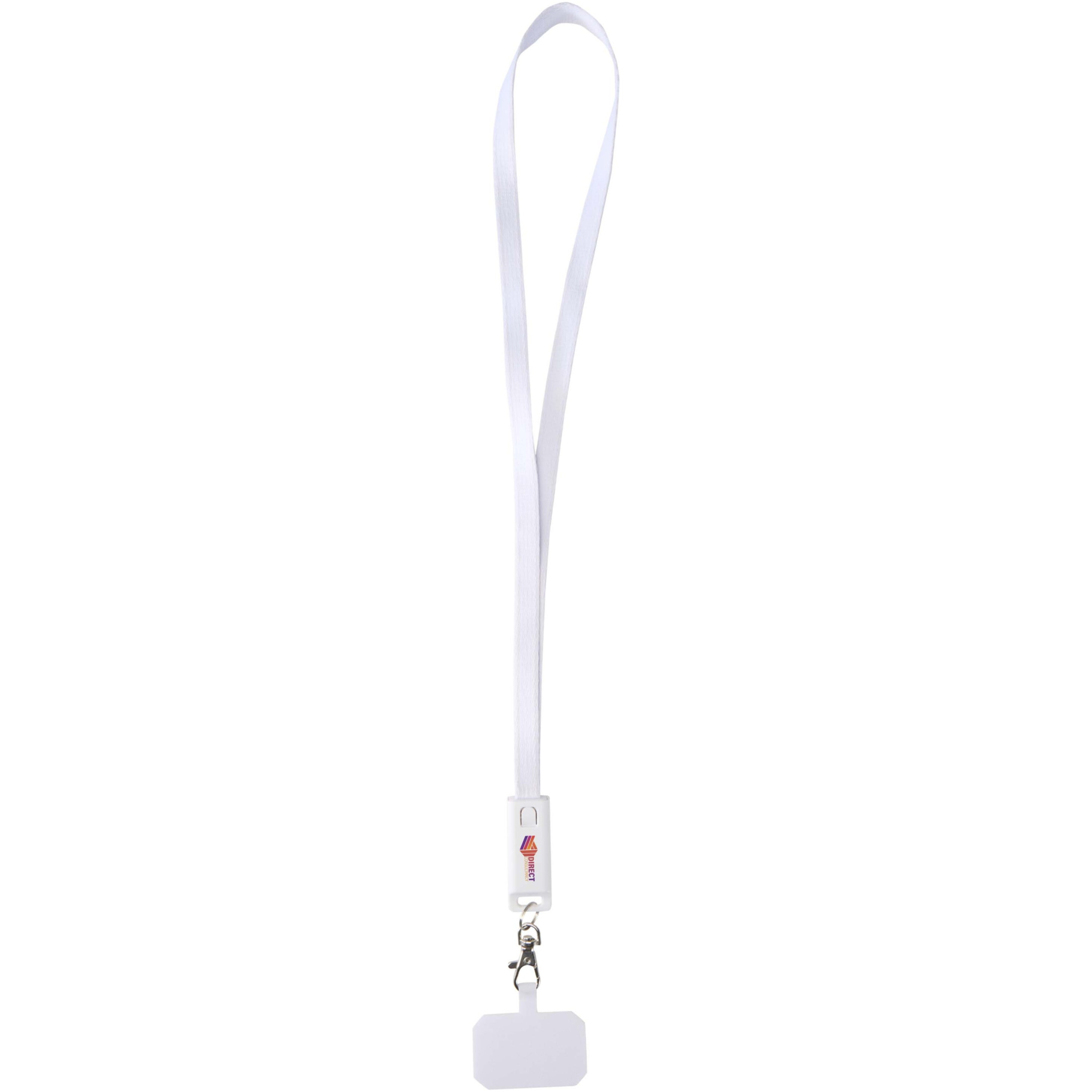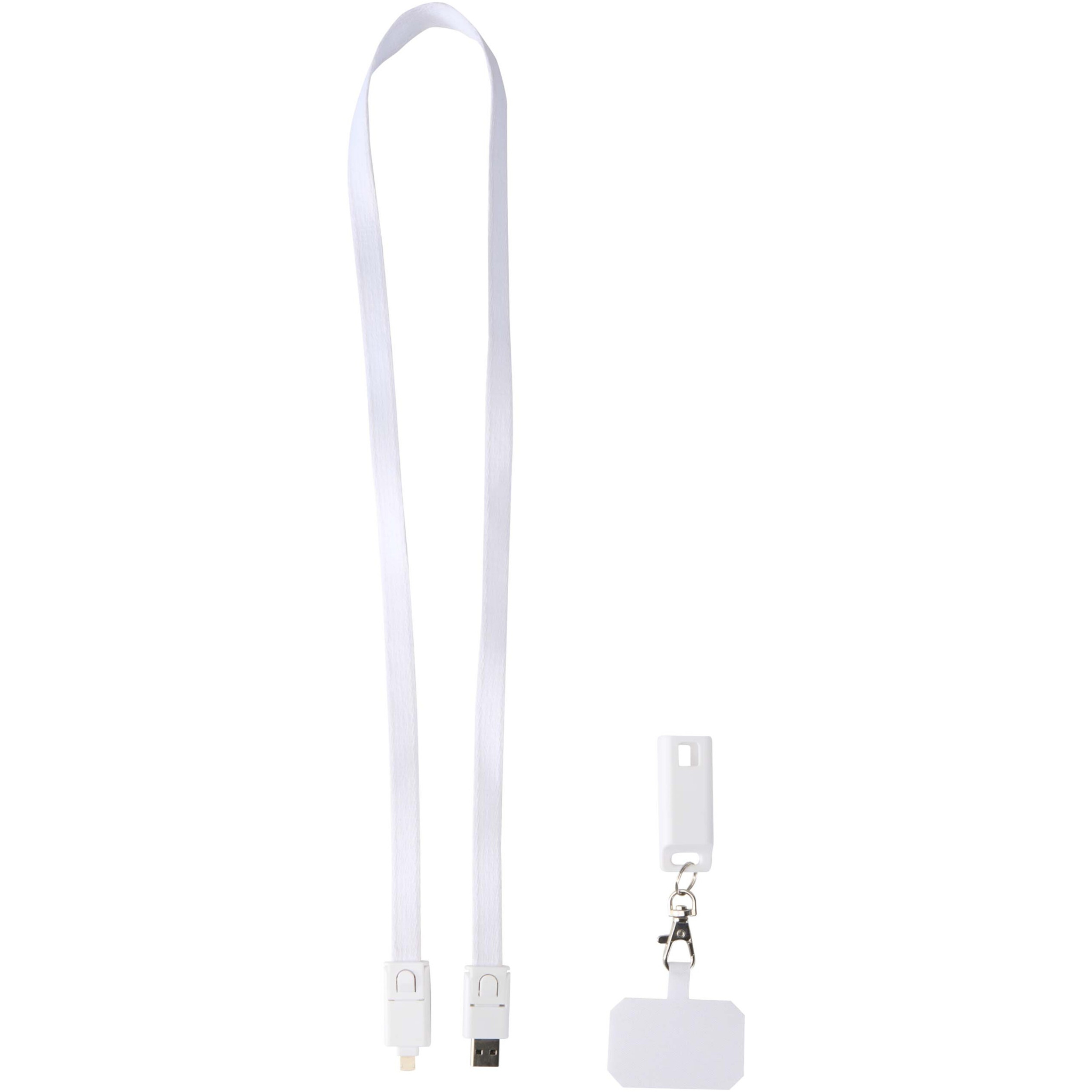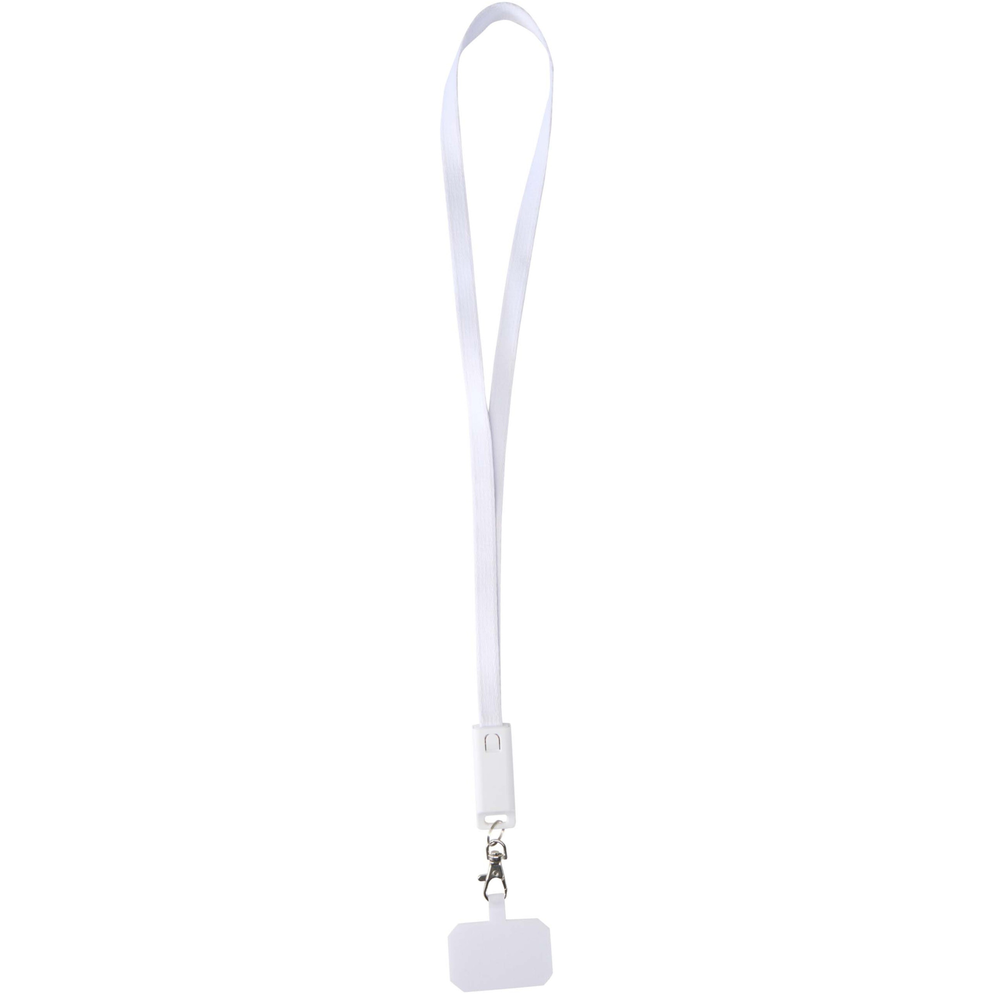 Franz recycled plastic smartphone lanyard with built-in data sync and 65W fast charge 5-in-1 cable, White
