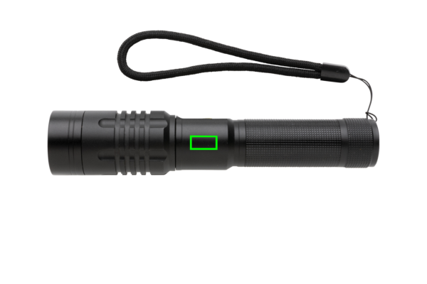 Functionality, performance and design all come together in this re-chargeable torch. The high quality aluminum alloy body fits perfectly in your hand. The premium focus light allows you to extend the light up to 2000 times. Because of its IP4 rating, it is weather proof so can easily be taken outside. The powerful bulb creates up to 1000 lumen and a beam that reaches up to 500 metres. The torch uses a re-chargable battery so no need to replace the batteries. Simply re-charge via your USB socket. The high quality bulb comes with 5 modes including SOS function. The 2000 mah battery allows a usage up to 4 hours on a single charge.