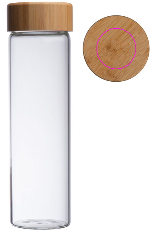 Glass bottle with bamboo lid and 500ml filling capacity. Your logo will be engraved on the lid.