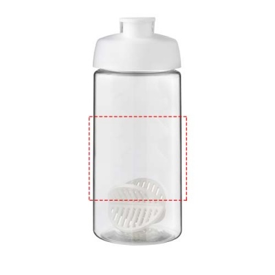 Single-wall sport bottle with shaker ball for the smooth mixing of protein shakes. Features a spill-proof lid with flip closure and finger grip design. Volume capacity is 500 ml. Made in the UK. Packed in a recycled PE plastic bag. BPA-free.