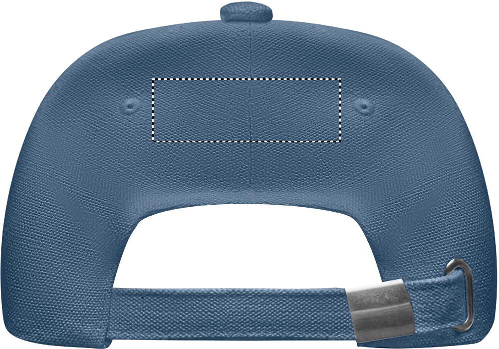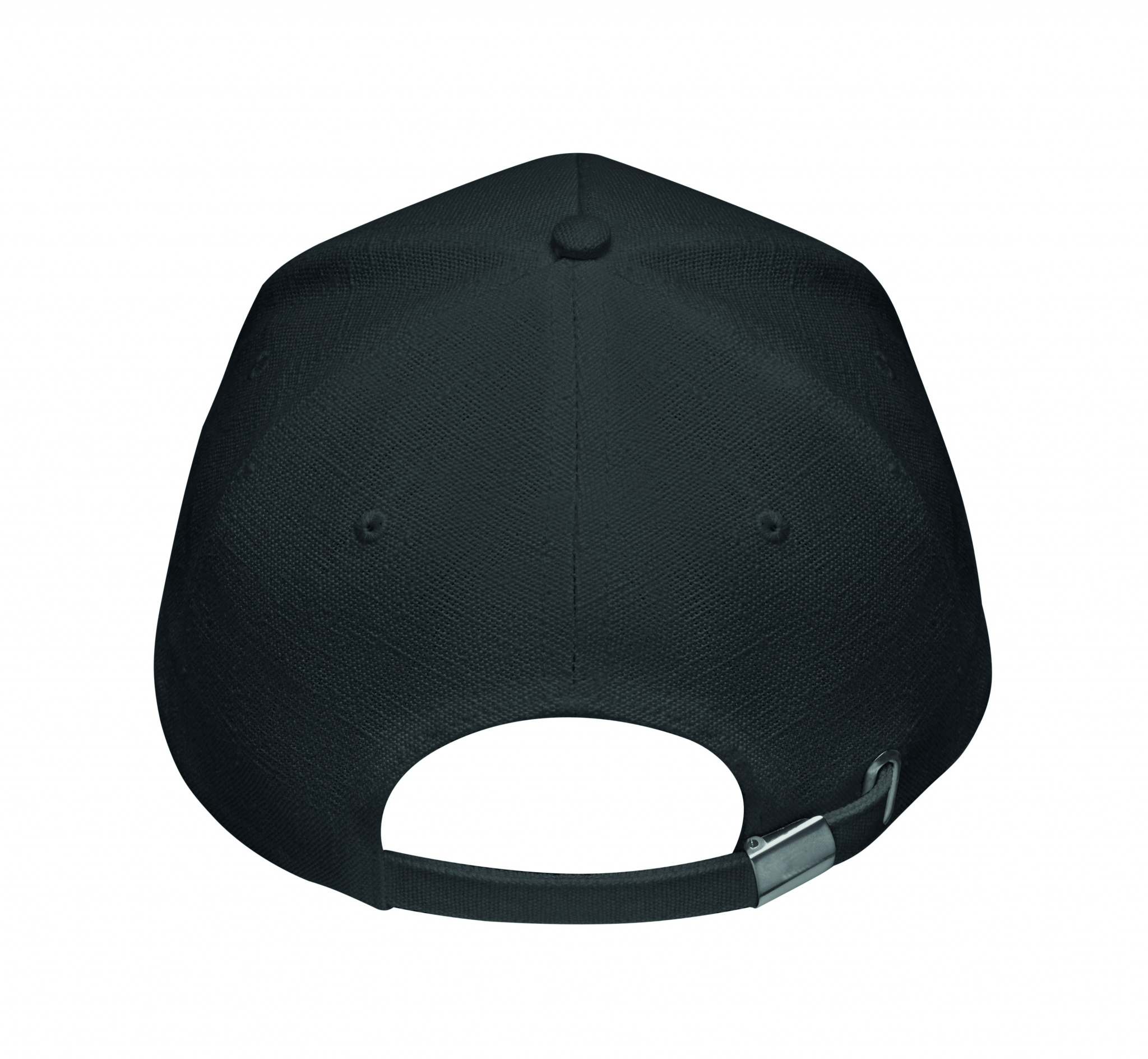 5 panel baseball cap in 100% hemp fabric 370 gr/m² with brass clips on adjustable strap closure. 5 stitched eyelets in matching colour. Size 7 1/4.