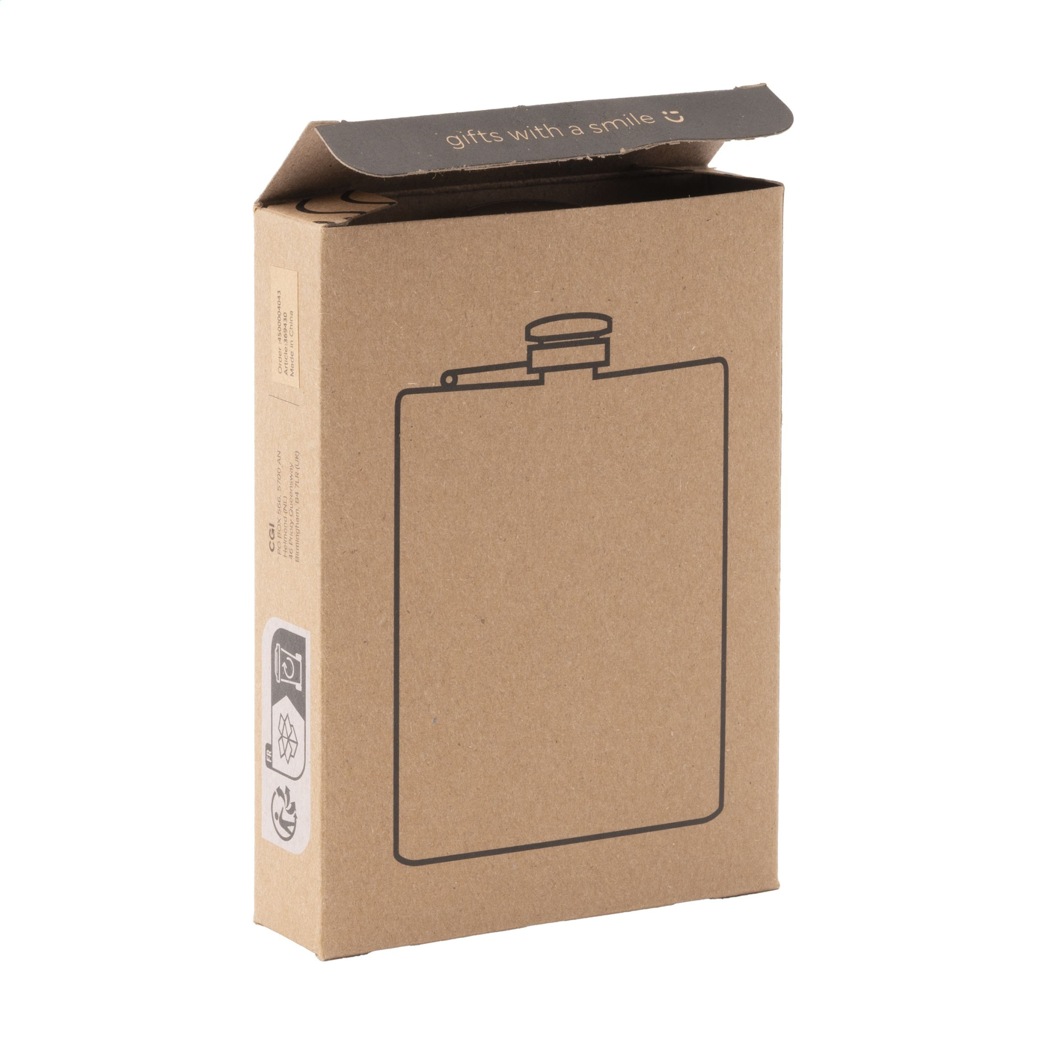 Tough stainless steel hip flask with a screw cap. Leak proof. Capacity 200 ml. Each item is individually boxed.
