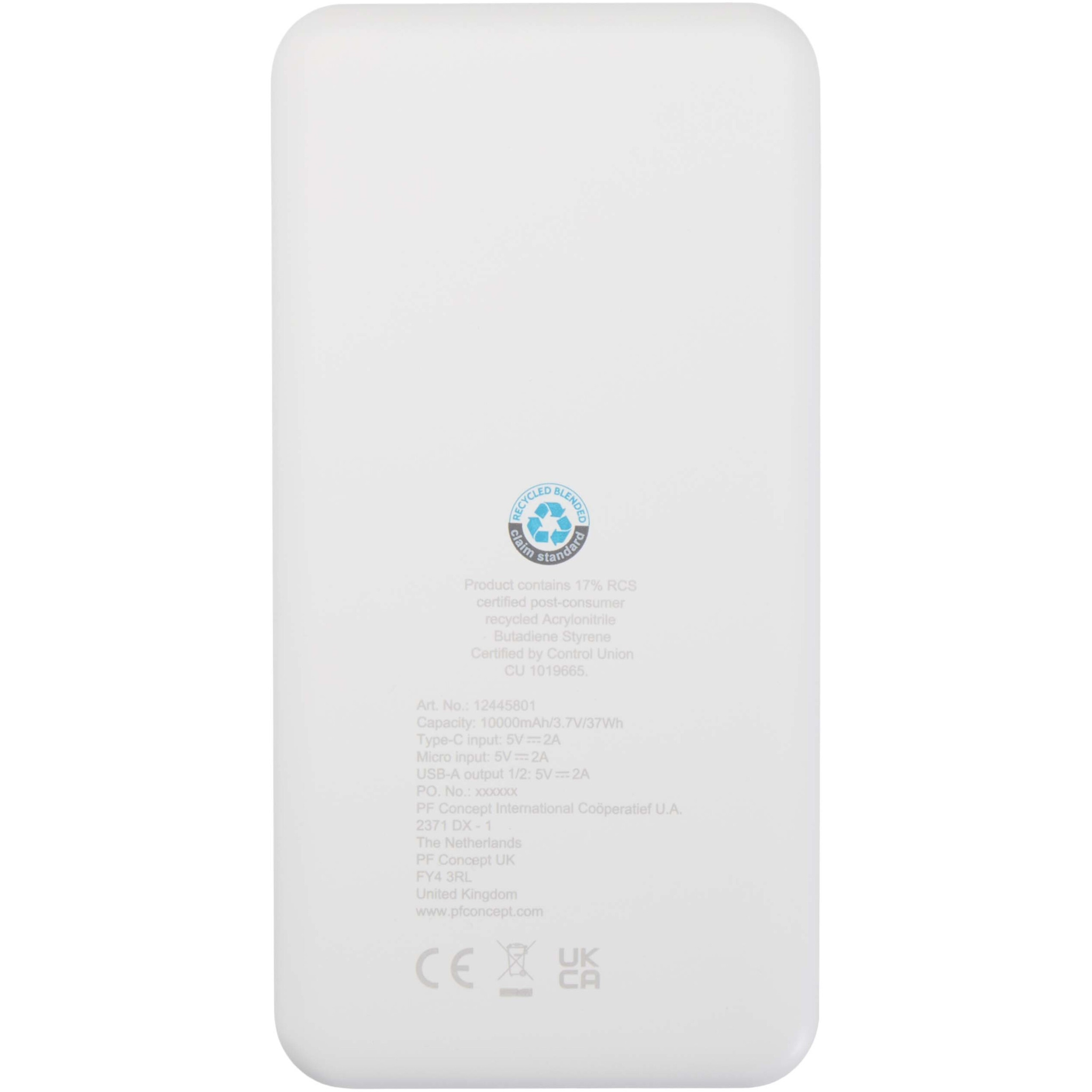 Intan 10.000 mAh 10W recycled plastic power bank, White
