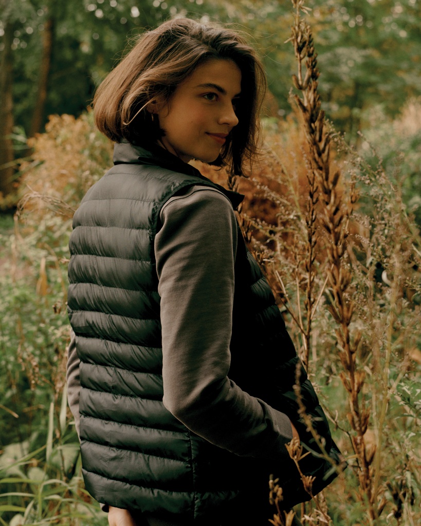 Women’s medium fit bodywarmer made from 100% post-consumer recycled polyester. The bodywarmer is fully quilted with 100% recycled polyester pearl filling. It has a reversed zipper at the front and practical zip pockets in the side panel seams. All zippers have extra zip pullers in matching colour for a refined look. The armholes have elastic binding and all seams at the inside are clean finished with recycled binding. Fluorine/PFAS free water repellent impregnation. The use of genuine recycled fabric materials and environmental impact claims are guaranteed, by using the AWARE™ disruptive physical tracer and blockchain technology. By scanning the QR code, you will gain access to a dedicated digital passport. 2% of proceeds of each sold product will be donated to Water.org. This product is OEKO-TEX® STANDARD 100 certified. The Meru bodywarmer is also available in men fit.