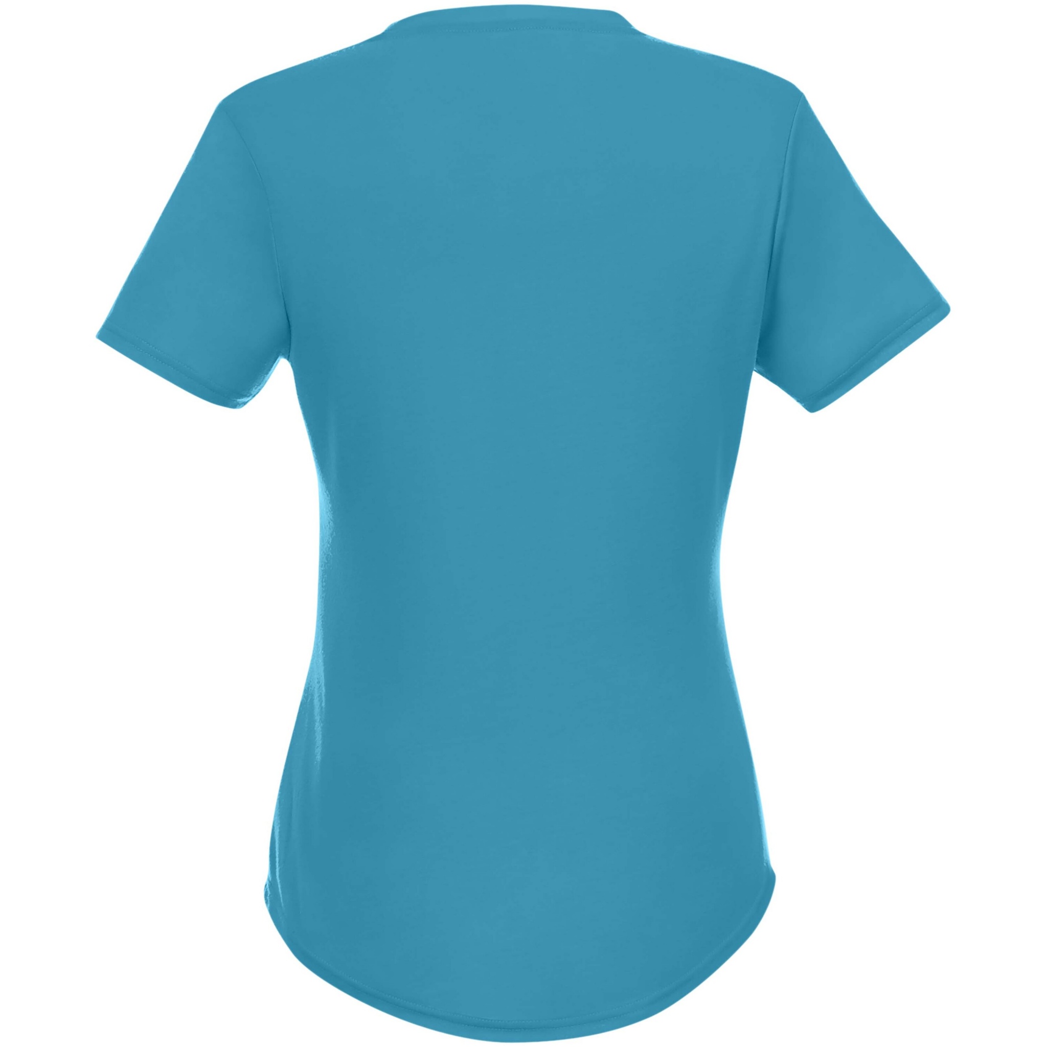 Sustainable promotional apparel. Scoop neck. Side seams. Dropped back hem. Shoulder to shoulder tape. Double needle stitching detail.