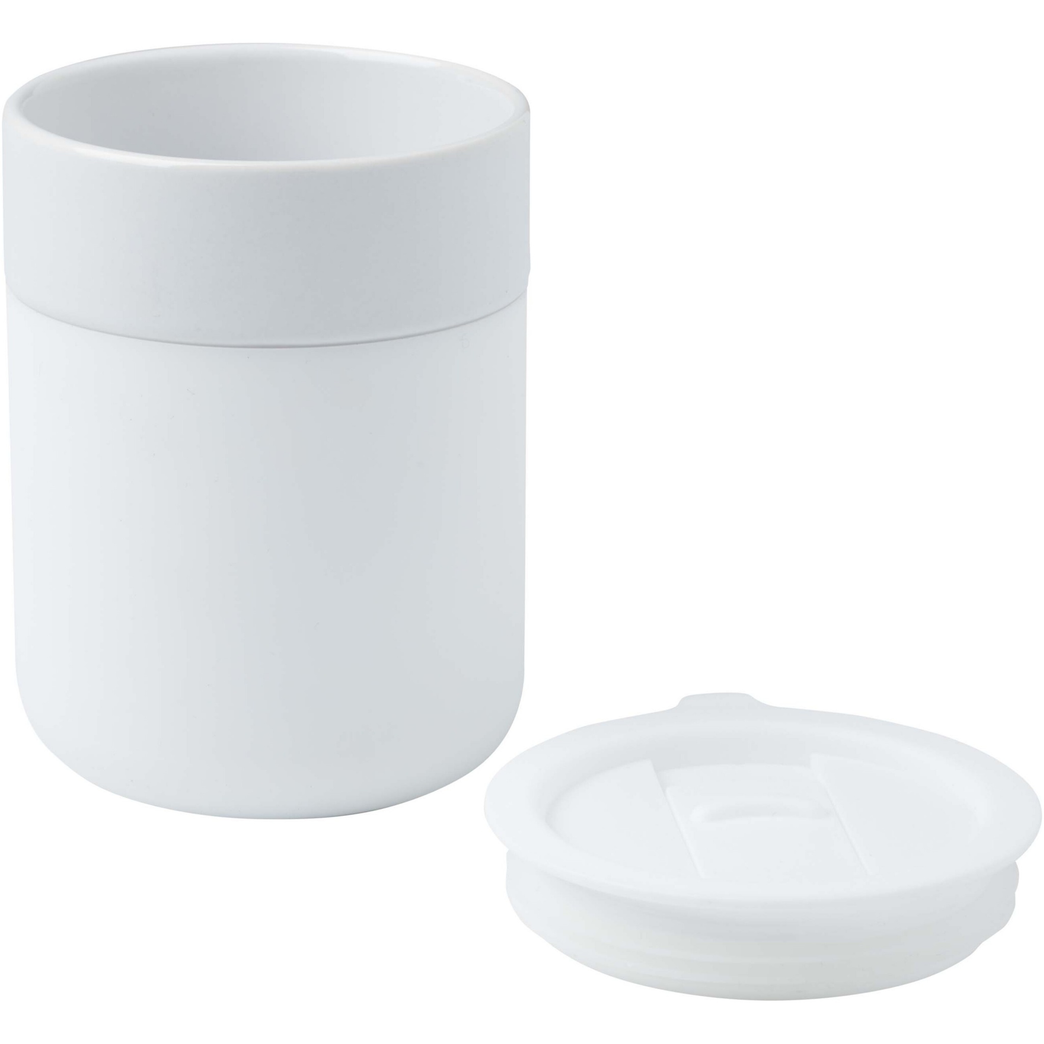 The Java single wall ceramic tumbler has a simple and practical design for everyday use and features a silicone wrap for a comfortable grip. Spill-proof lid. Volume capacity: 330 ml.