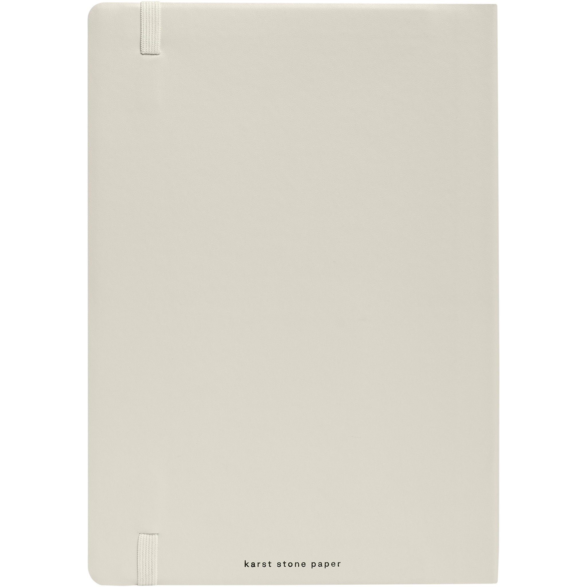 The Karst® A5 softcover notebook is the most luxurious notebook in the Karst® collection, and has a durable and flexible vegan leather cover. Its waterproof cover and pages will keep it from absorbing moisture for those rushed early-morning coffee runs. Features an elastic band to keep notebook shut, 144 waterproof, tear-resistant lined pages, an expandable back pocket for storage, and a divider ribbon with heat-sealed tip and rounded corners.