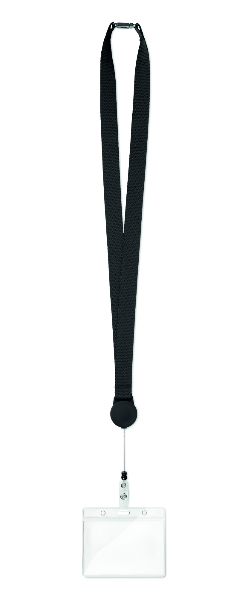 Lanyard in polyester with retractable badge holder and safety breakaway. 20mm wide. Sublimation print available on white item only.