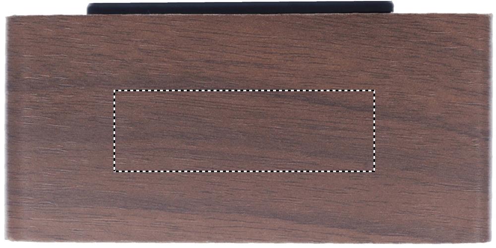 LED time display alarm clock and temperature display with wireless charging functionality in MDF. AC-DC 2 (5W) pin plug adapter included. Not suitable for UK use.