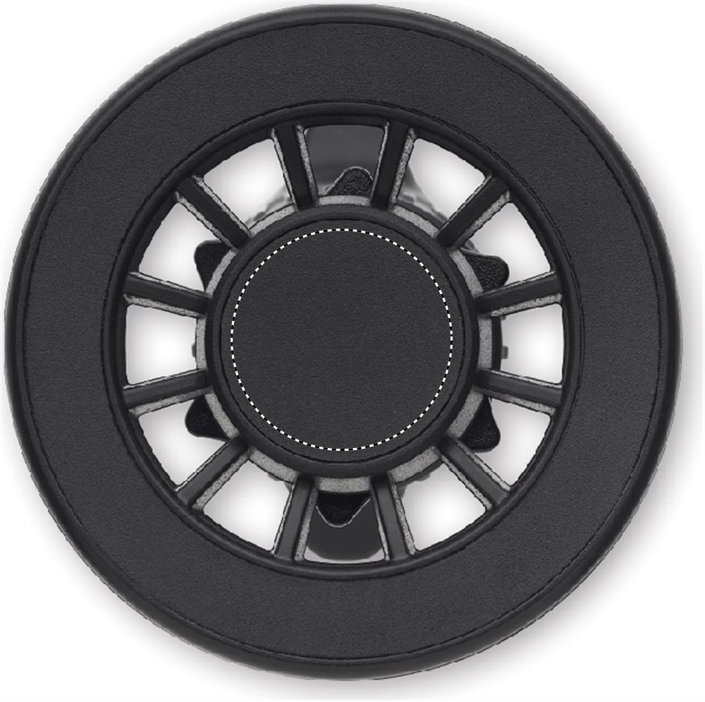 360 degree rotation magnetic air vent mount phone holder in ABS. Includes additional magnetic metal ring to support charging of non-magnetic wireless chargeable phones.