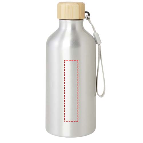 RCS certified recycled aluminium water bottle with a stylish bamboo lid. This lightweight, single-walled bottle comes with a strap for easy carrying. The bamboo is from sustainable, environmentally and socially responsible sources. Capacity is 500 ml. Hand wash only.