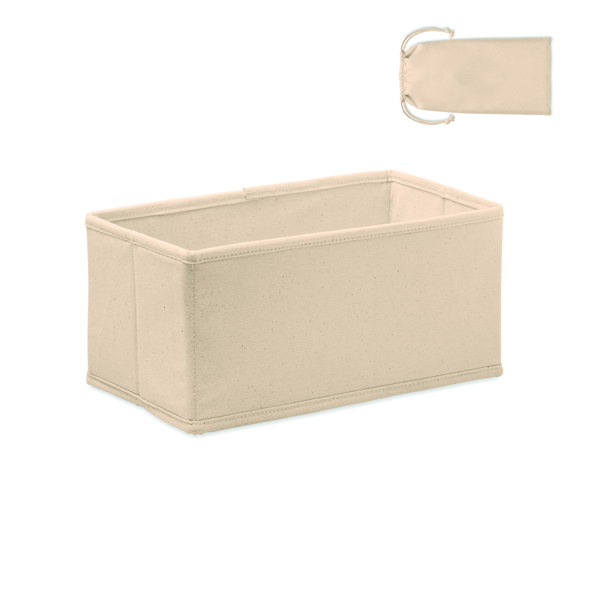 Medium foldable accessories or storage box in cotton (220 gr/m²). Presented in cotton (140 gr/m²) drawcord pouch.