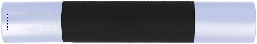 Metal ball pen with silver chrome finish and PU leather application in aluminium tube box. Black ink.