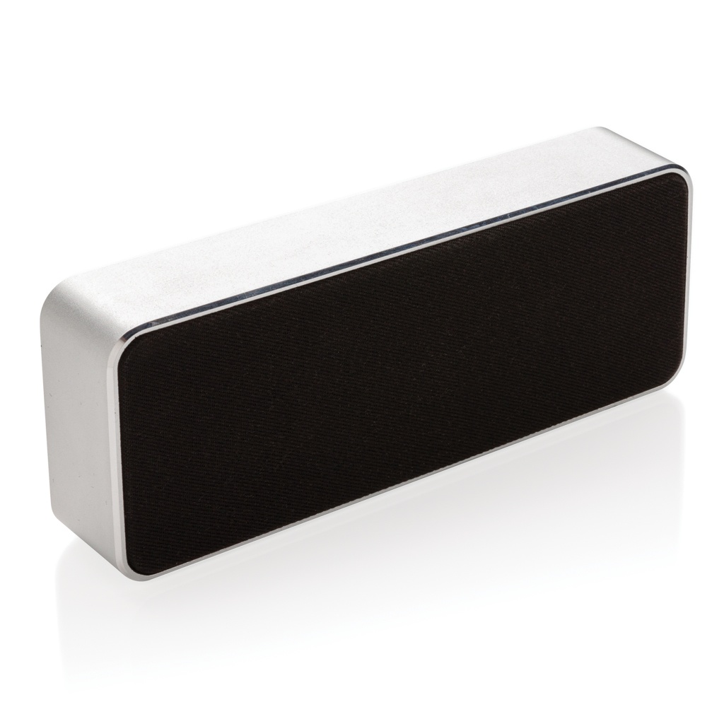 Luxury 3W wireless speaker that combines aluminium, fabric and bamboo material all in one product. The wireless speaker uses BT 5.0 for smooth connection up to 10 metres. Play time up to 4 hours on one charge and re-charge in 1.5 hours. With built in sub-woofer for enhanced bass performance. Including PVC free TPE micro usb cable for re-charging.