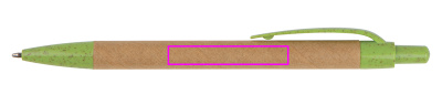 Ballpen made of recycled cardboard, with blue writing refill. All applications are made of sustainable wheatstraw. We print your logo on the shaft.