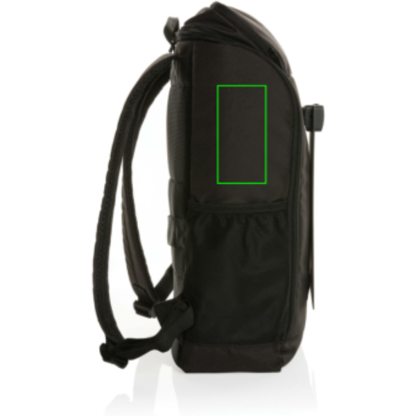This modern AWARE™ RPET backpack accompanies you on every adventure. With deep vertical front pockets and a neat easy access opening that reveals a roomy interior complete with a 15.6 inch laptop compartment. The attached 5W solar panel allows direct charging to your mobile device, speaker, powerbank or other device. Simply connect your cable to the device while the panel is in sunlight and start charging. Charge rate depends on conditions. The panel uses high quality monocrystalline solar panels with 21% conversion rate. With USB A and Type C output (max 5V/1A) and charge indicator to show charging speed. Charging speed solar: 5V/1000mA. Made with PET material and RCS certified recycled ABS. Including integrated stand function to use the solar panels at an optimal angle. IPX 6 waterproof. Packed in FSC® mix packaging. 2% of proceeds of each AWARE™ product sold will be donated to Water.org. PVC free.