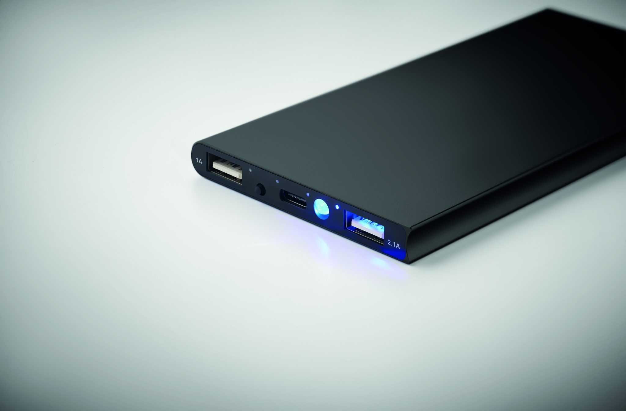Power bank 8000 mAh in recycled aluminium. Capacity for smartphone use, output current DC5V/2A. Including USB Type-C charging cable. In/Output: USB Type-C.