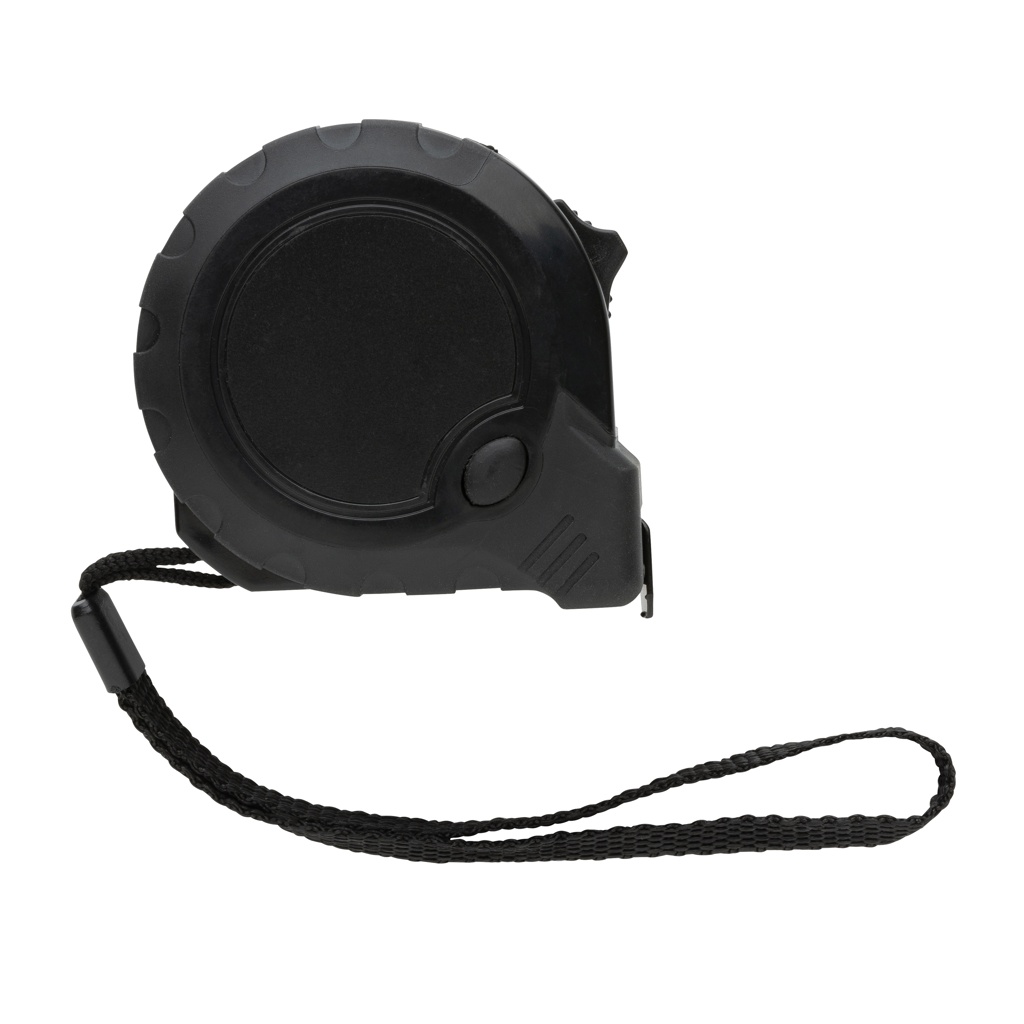 5 metre tape made with RCS (Recycled Claim Standard) certified recycled ABS. Total recycled content: 15% based on total item weight. RCS certification ensures a completely certified supply chain of the recycled materials. With deluxe TRP rubber grip for smooth hold. With release/lock button and extra hold button on the side. With 19mm single sided tape, yellow with black carbon steel hook. With polyester wrist strap. Packed in FSC® mix kraft packaging